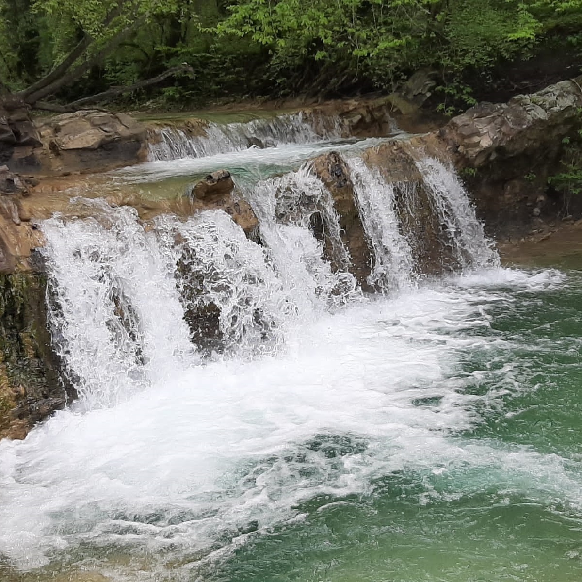 Первый водопад, в месте падения искрящихся струй, образовал под собой чашу, в которой можно купаться. Реликтовый лес подходит к самому берегу. Здесь много полян, где можно отдохнуть, поиграть в спортивные игры и отправиться дальше.